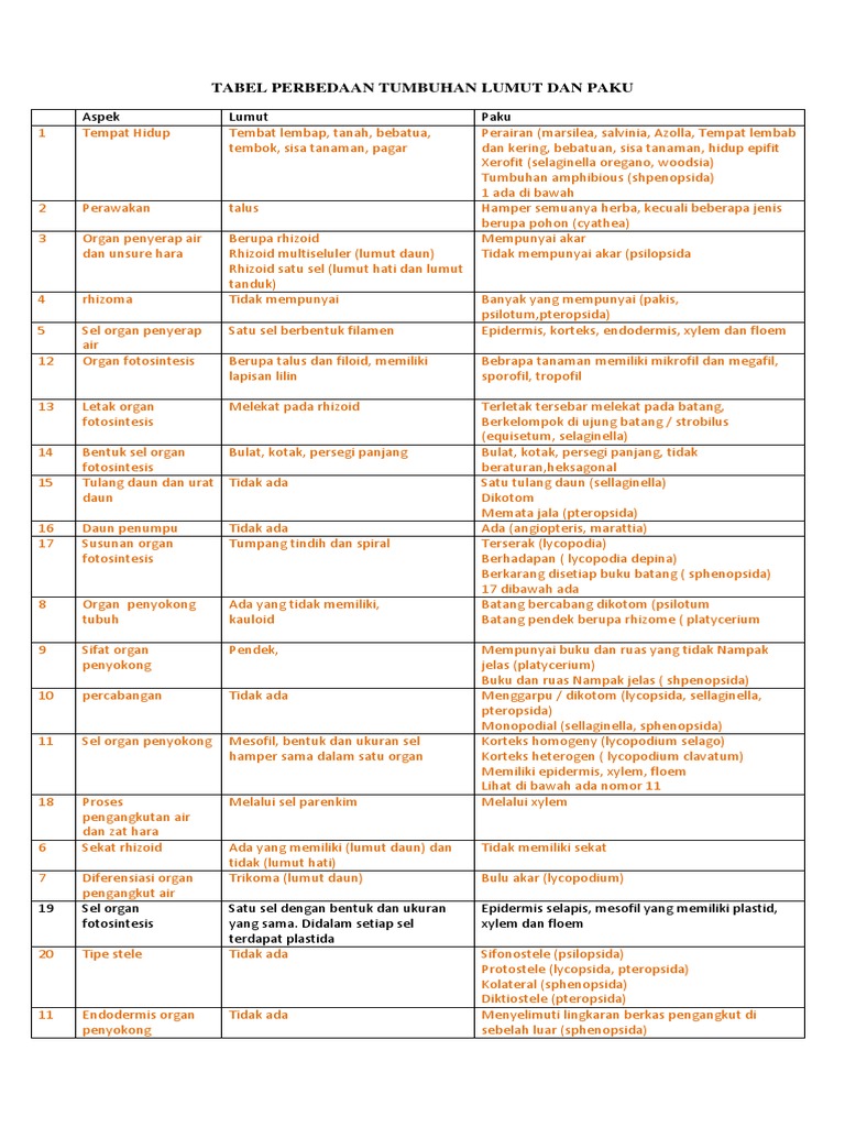 Tabel Berikut Menujukan Perbandingan Tumbuhan Lumut Dan Tumbuhan Paku Pernyataan Yang Benar Tentang Perbandingan Tumbuhan Lumut Dan Tumbuhan Paku Ditunjukan Oleh Blog Pak Pandani