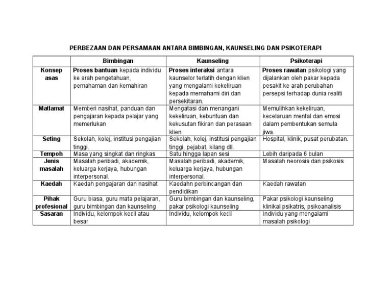 A Perbezaan Psikoterapi Bimbingan Dan Kaunseling