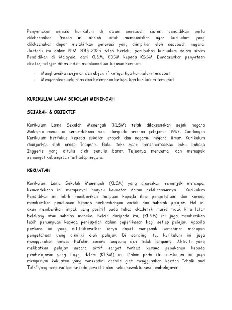 Perbezaan Kurikulum Lama Sekolah Menengah Klsm Kurikulum Bersepadu Sekolah Menengah Kbsm Dan Kurikulum Standard Sekolah Menengah Kssm