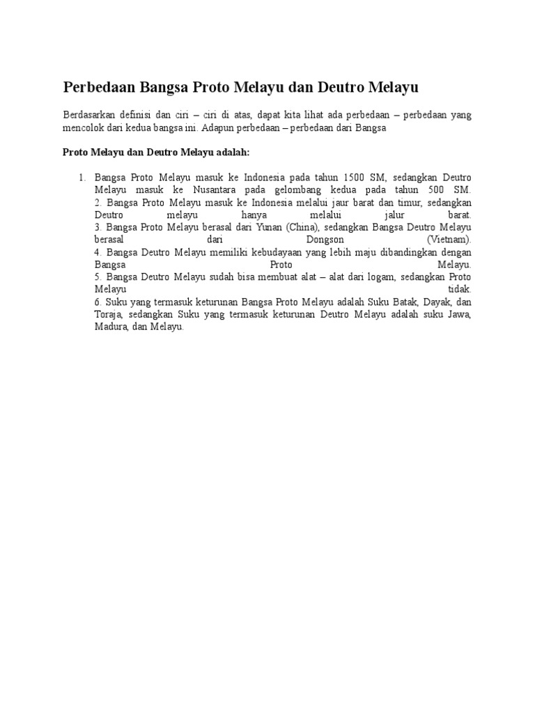 Perbezaan Melayu Proto Dan Melayu Deutro