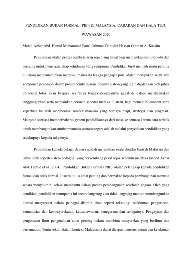 Pdf Pendidikan Bukan Formal Pbf Di Malaysia Cabaran Dan Hala Tuju Wawasan 2020 Zainudin Hassan Academia Edu