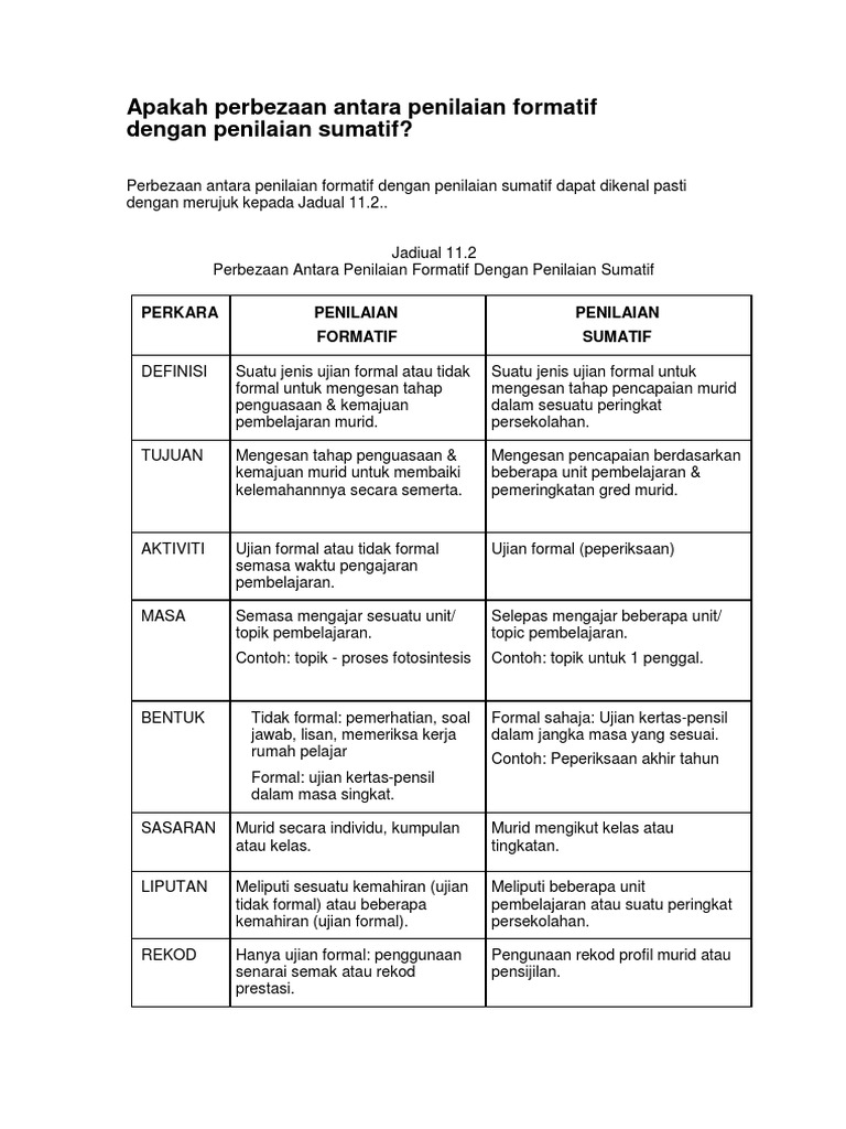 Penilaian Pengajaran Dan Pembelajaran Perbezaan Penilaian Formatif Dan Sumatif