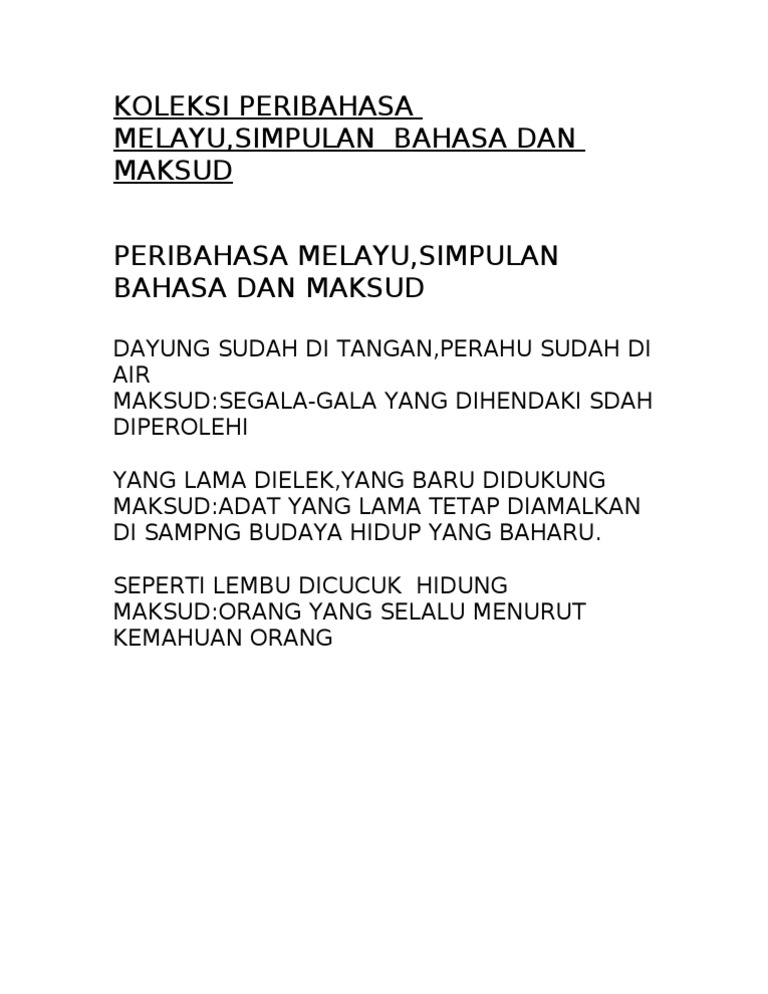 Koleksi Peribahasa Melayu Simpulan Bahasa Dan Maksud