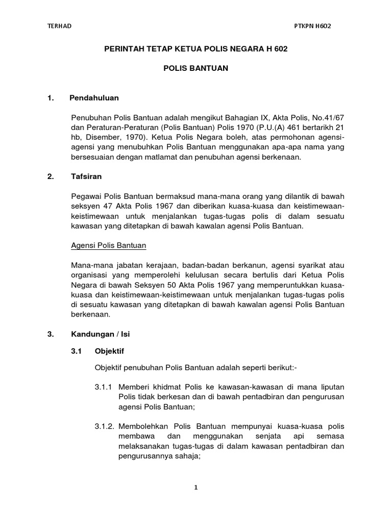 Garis Panduan Mengikuti Latihan Polis Bantuan 4 2 Syarat Perintah Tetap Ketua Polis Negara Ptkpn Pdf Document