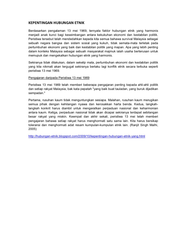 Kepentingan Hubungan Etnik Kesan Peristiwa 13 Mei 1969