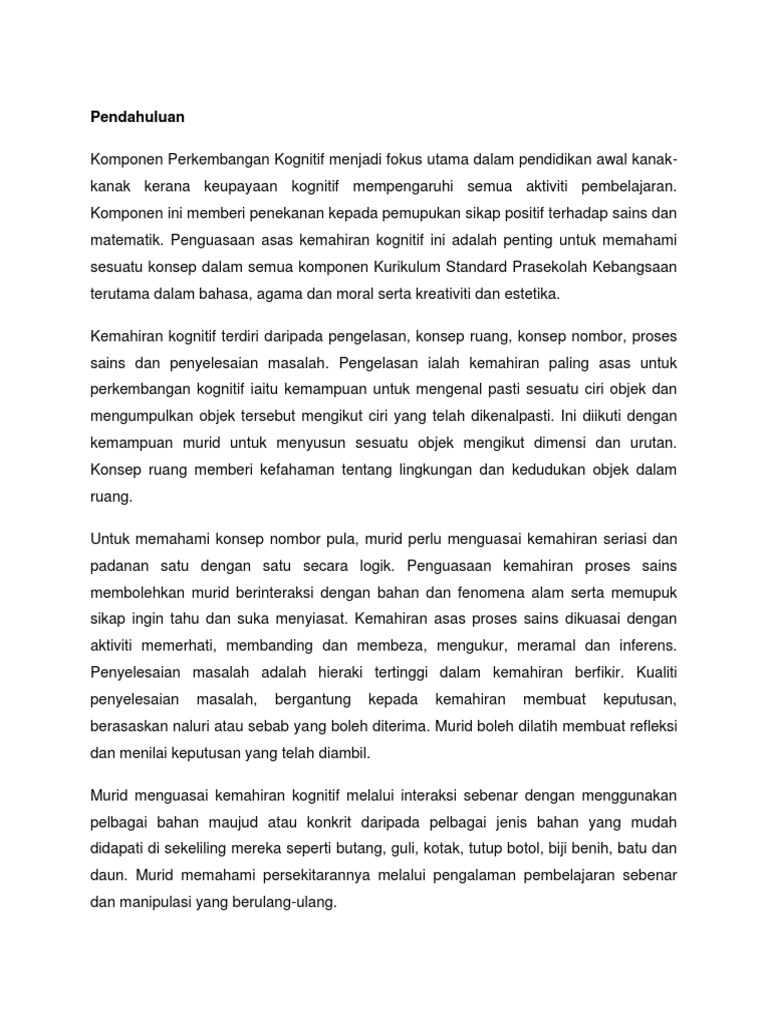 Pdf Perkembangan Kognitif Awal Kanak Kanak Perbandingan Antara Taska Rusmailani Ab Aziz Academia Edu