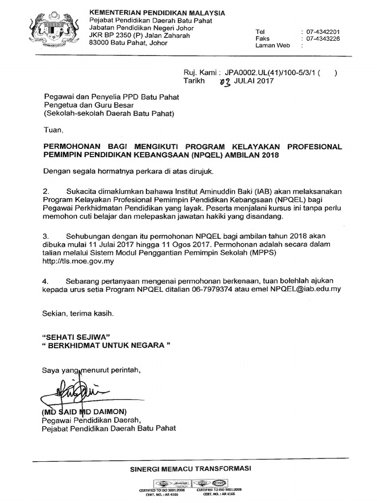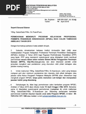 Permohonan Program Kelayakan Profesional Pemimpin Pendidikan Kebangsaan Npqel Ambilan Tahun 2019