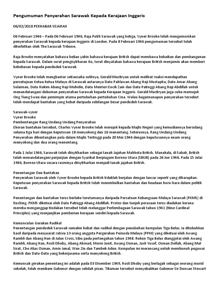 Pengumuman Penyerahan Sarawak Kepada Kerajaan Inggeris Docx