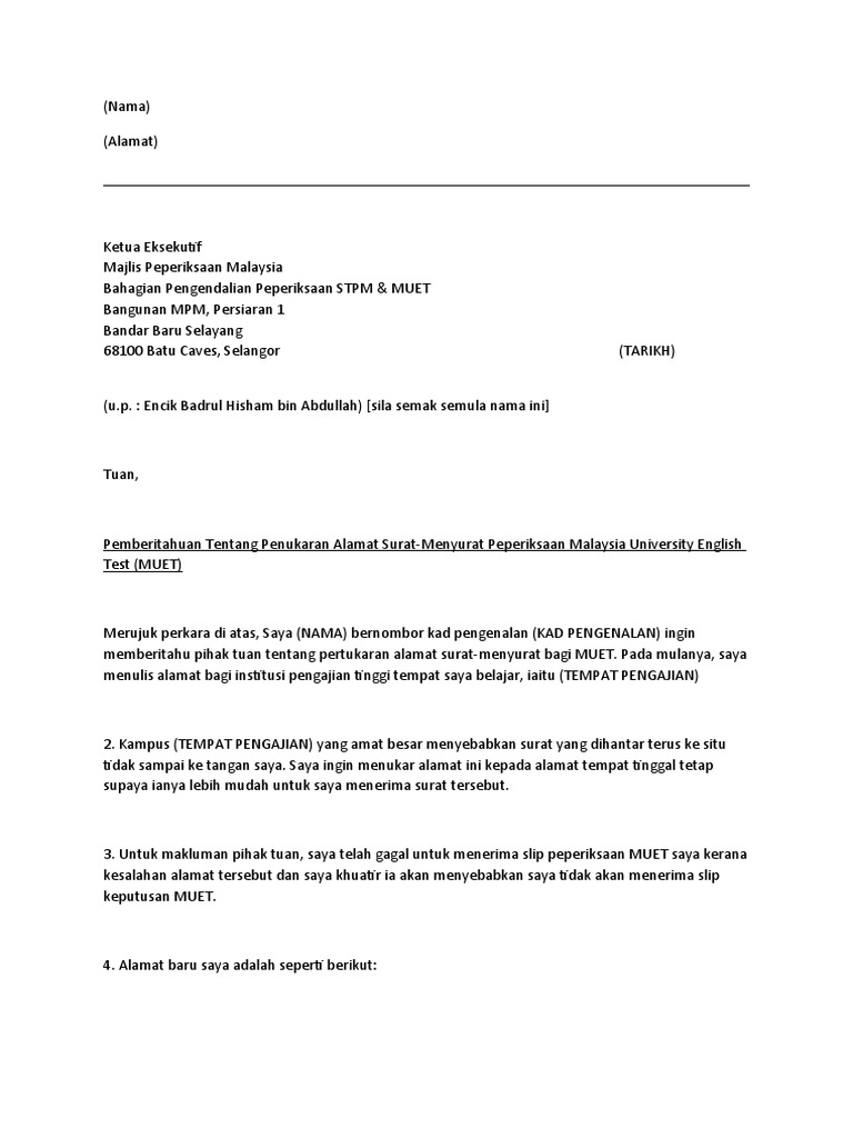 Contoh Surat Rasmi Permohonan Pertukaran Nama J Kosong W