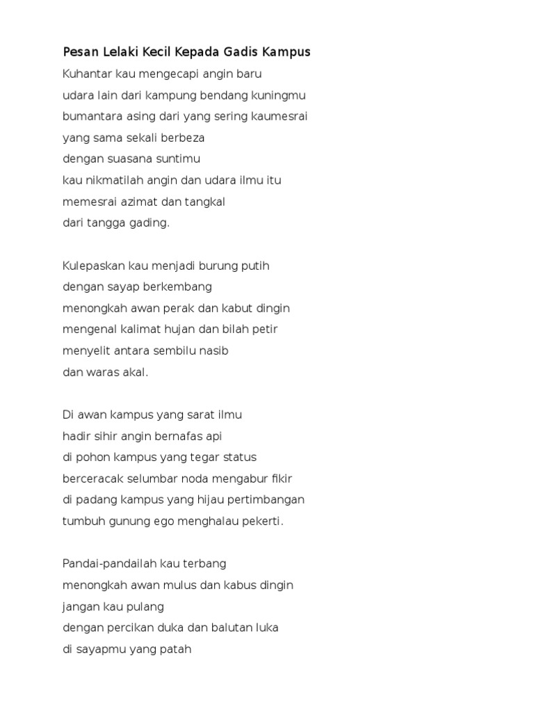 4 Sajak Pesan Lelaki Kecil Kepada Gadis Kampus Docx Course Hero