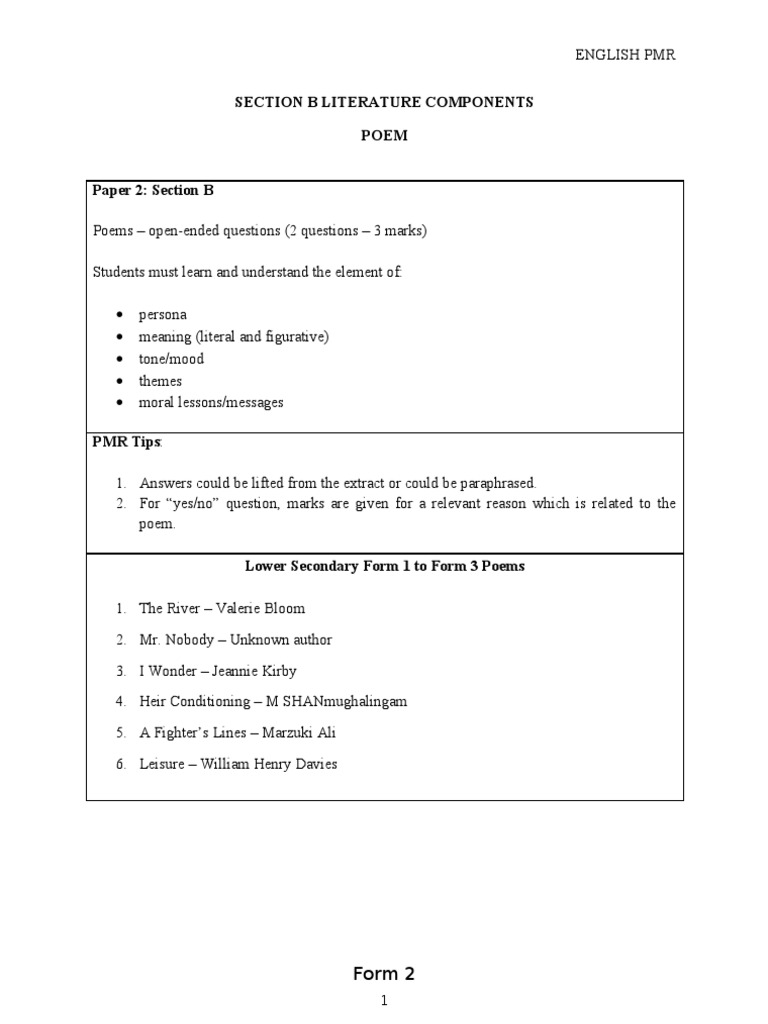 English Pmr Poem Answer Poetry Fiction Literature