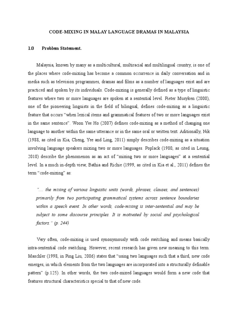 Code Mixing In Malay Dramas Final Draft 2 Alternative Sentence Linguistics Linguistics