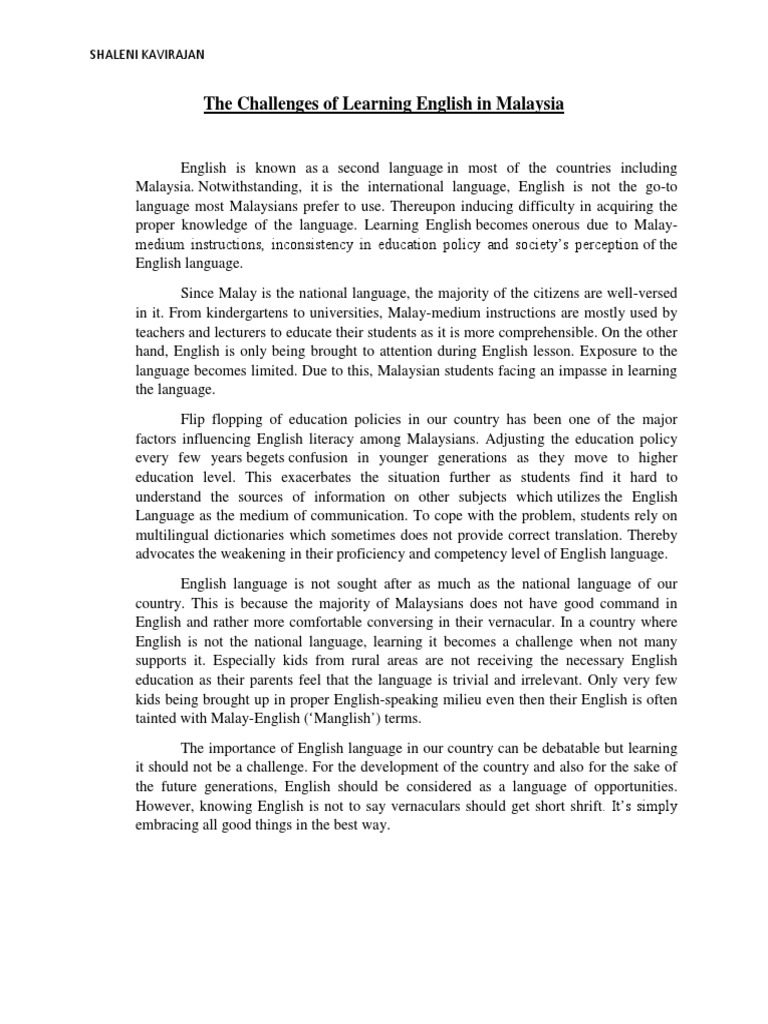 The Challenges Of Learning English In Malaysia English Language Malaysia