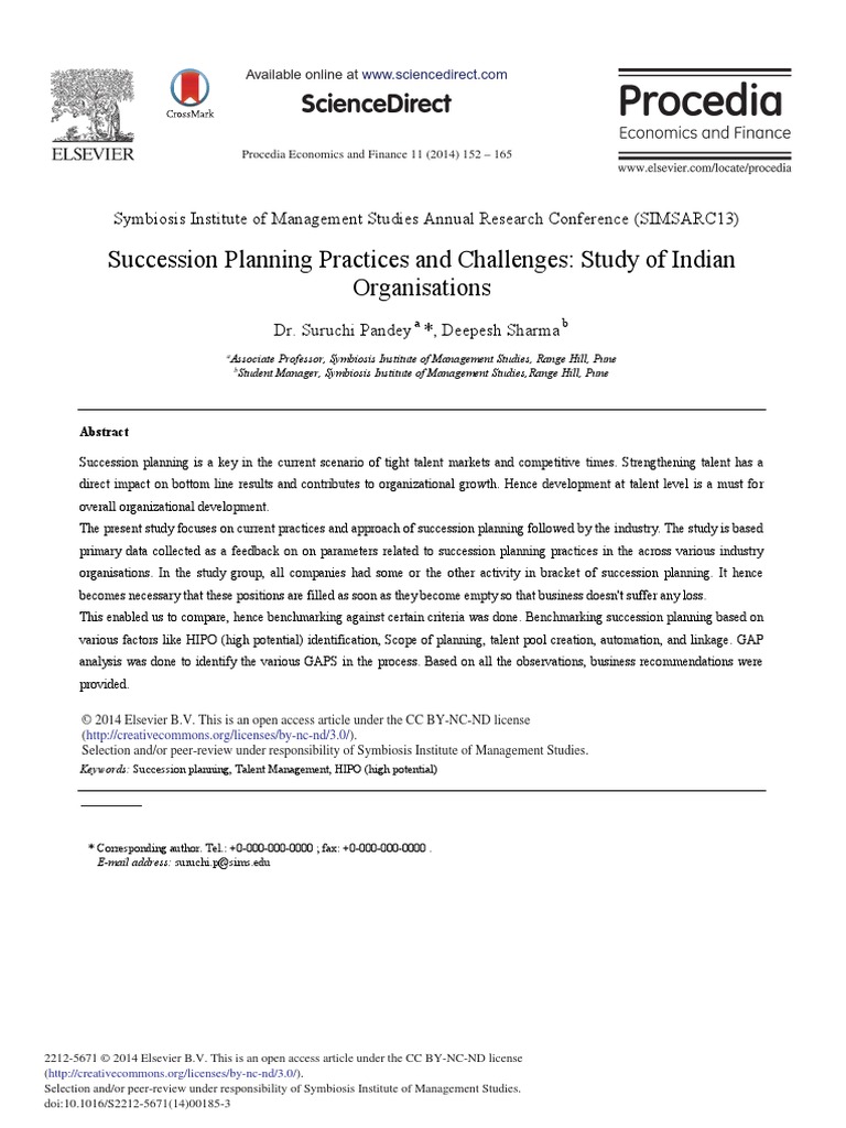 Succession Planning Practices And Challenges Study Of Indian Organisations 2014 Procedia Economics And Finance Succession Planning Competence Human Resources