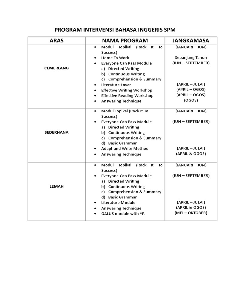 Program Intervensi Bahasa Inggeris Spm 2018