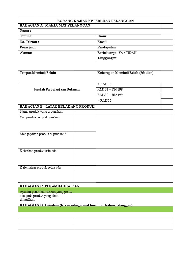 Borang Kajian Keperluan Pelanggan