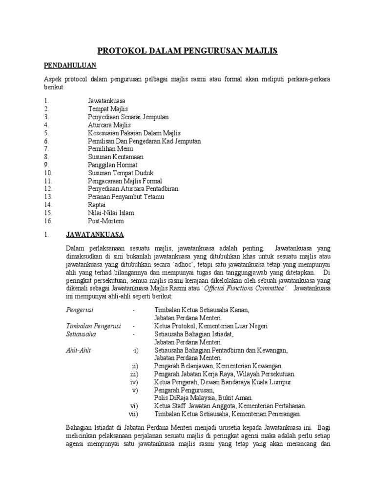Protokol dan pengurusan majlis. Pendahuluan aspek protocol dalam pengurusan pelbagai majlis rasmi atau formal akan meliputi perkara perkara berikut. Pengurusan majlis dan protokol bengkel training the trainers 3t fasilitator kursus kokurikulum berkredit kkb universiti putra malaysia 1 februari 2020 fasi khas. Penulisan dan pengedaran kad jemputan 7.