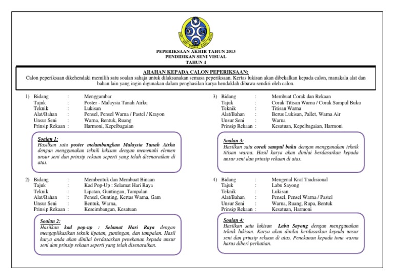 Soalan Pendidikan Seni Visual Akhir Tahun Tahun 4