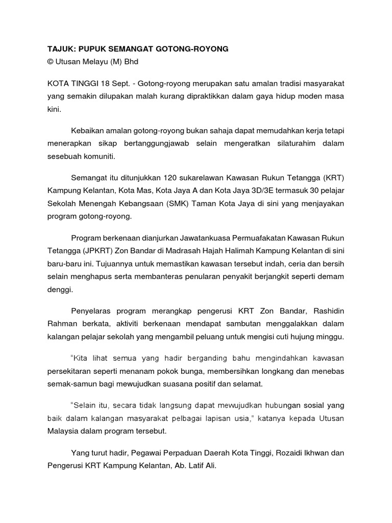 Amalan Gotong Royong Dapat Menwujudkan Hubungan Silaturrahim Di Kalangan Kaum January 2017